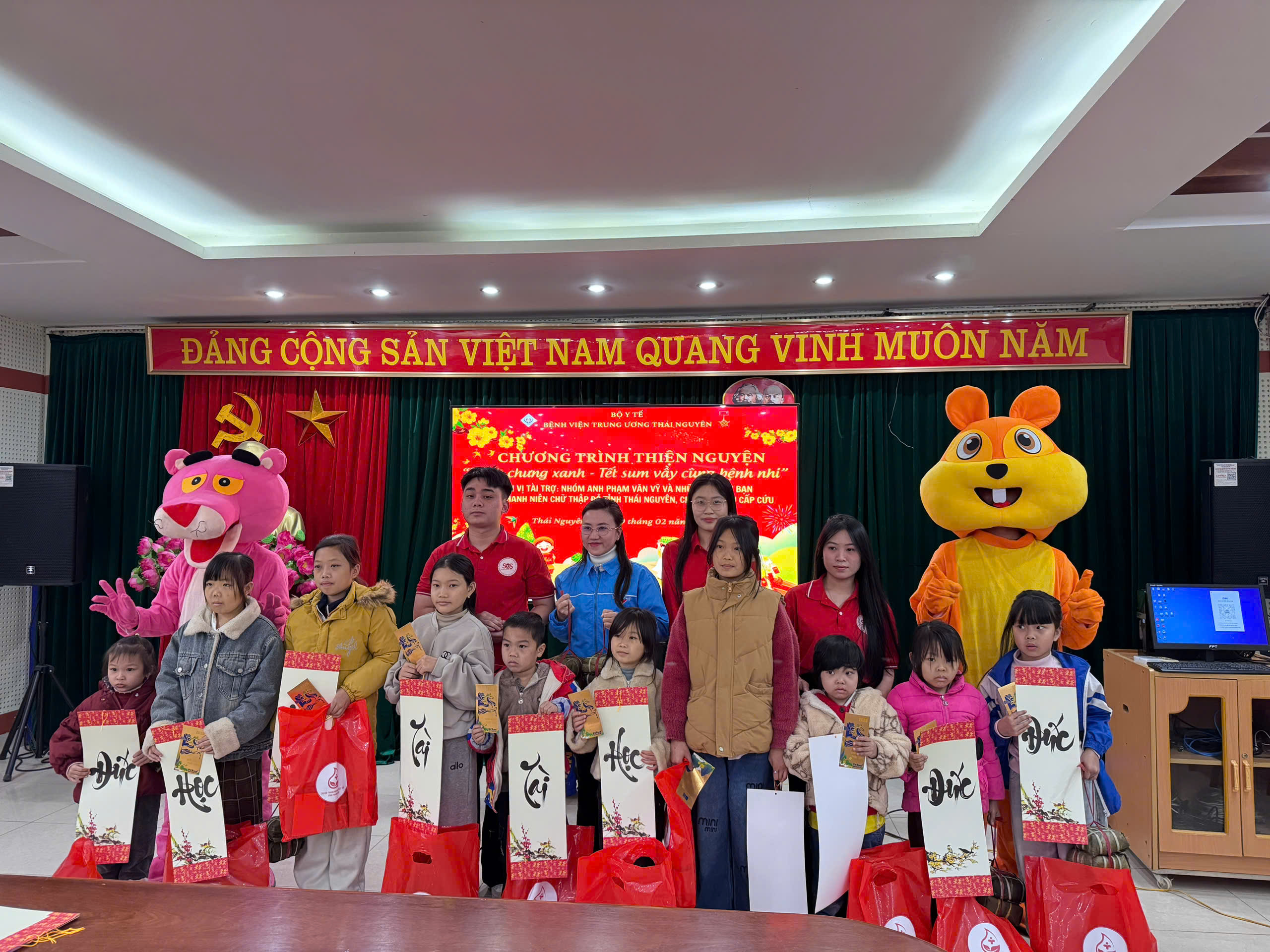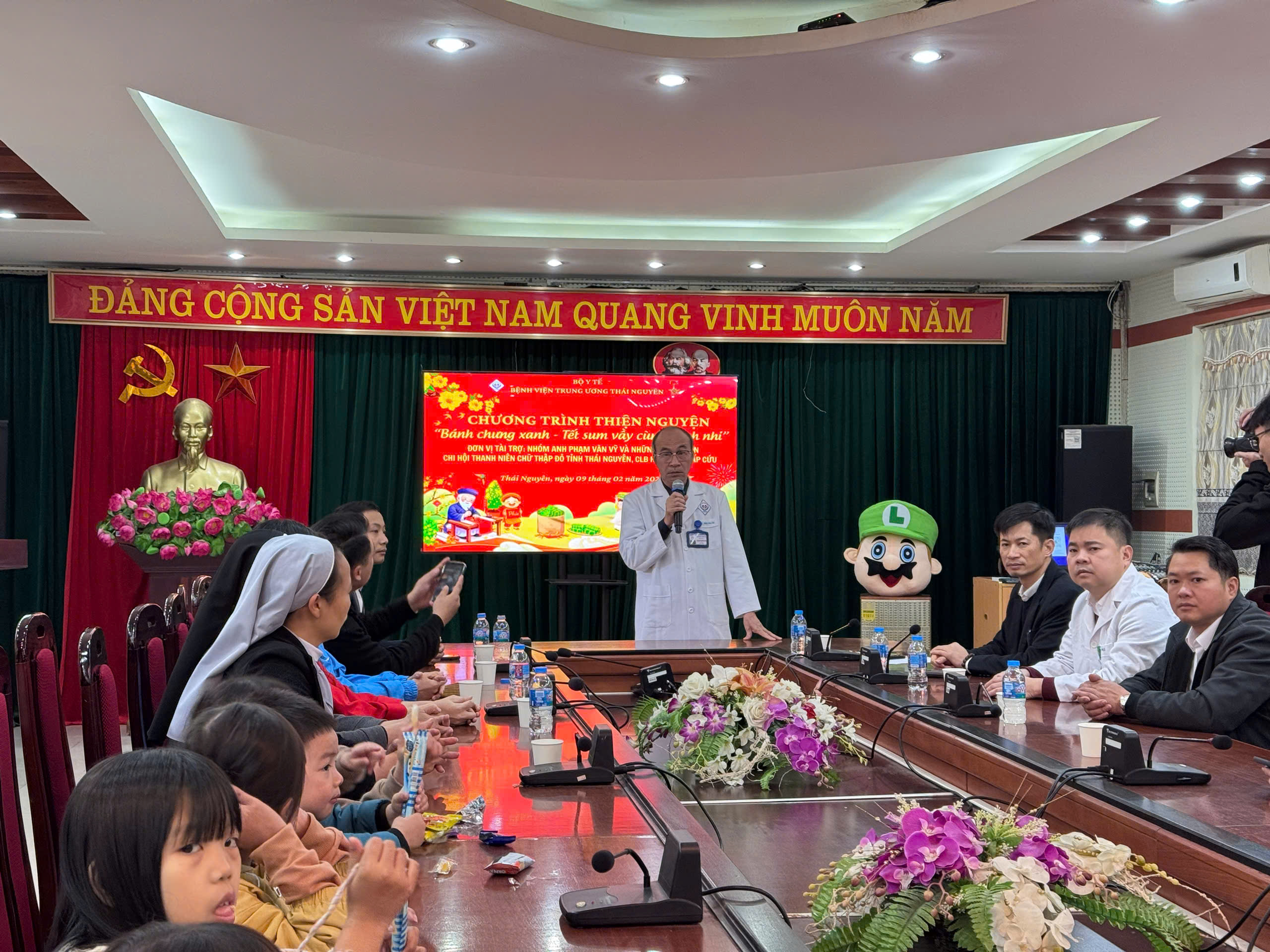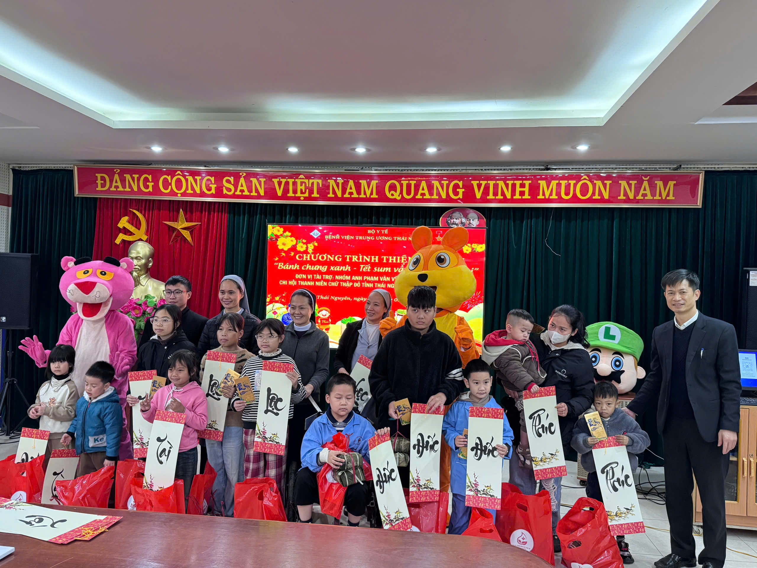 Sáng 9/2, Bệnh viện Trung ương Thái Nguyên phối hợp với các nhà hảo tâm tổ chức chương trình thiện nguyện “Bánh chưng xanh - Tết sum vầy cùng bệnh nhi”, trao tặng những phần quà ý nghĩa tới các bệnh nhi và người bệnh đang điều trị tại khoa Huyết học lâm sàng và Trung tâm Ung bướu của Bệnh viện.