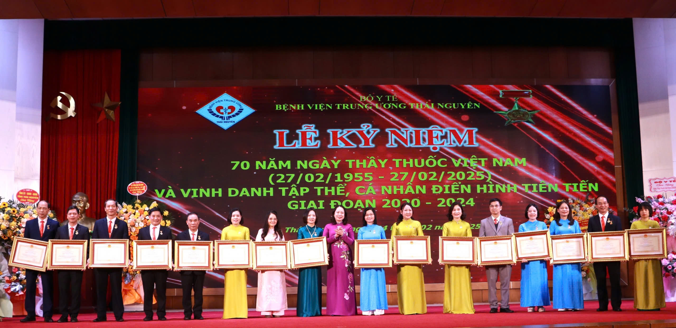 Phát biểu tại Lễ kỷ niệm, đồng chí ghi nhận, biểu dương những kết quả nổi bật trong 74 năm xây dựng và phát triển của Bệnh viện, khẳng định Bệnh viện đã làm chủ nhiều kỹ thuật tiên tiến, trở thành Trung tâm y tế chuyên sâu, tuyến cuối của khu vực Trung du và miền núi phía Bắc, đồng thời thực hiện tốt nhiệm vụ khám chữa bệnh, đào tạo, nghiên cứu khoa học và hợp tác quốc tế. Nhân dịp này, Phó Chủ tịch nước đã trao danh hiệu “Thầy thuốc ưu tú” cho 16 cán bộ y tế, tặng quà cho 10 người bệnh; Bệnh viện khen thưởng 10 tập thể, 10 cá nhân tiêu biểu giai đoạn 2020 – 2024 và vinh danh danh hiệu “Bàn tay vàng” lần thứ Nhất.