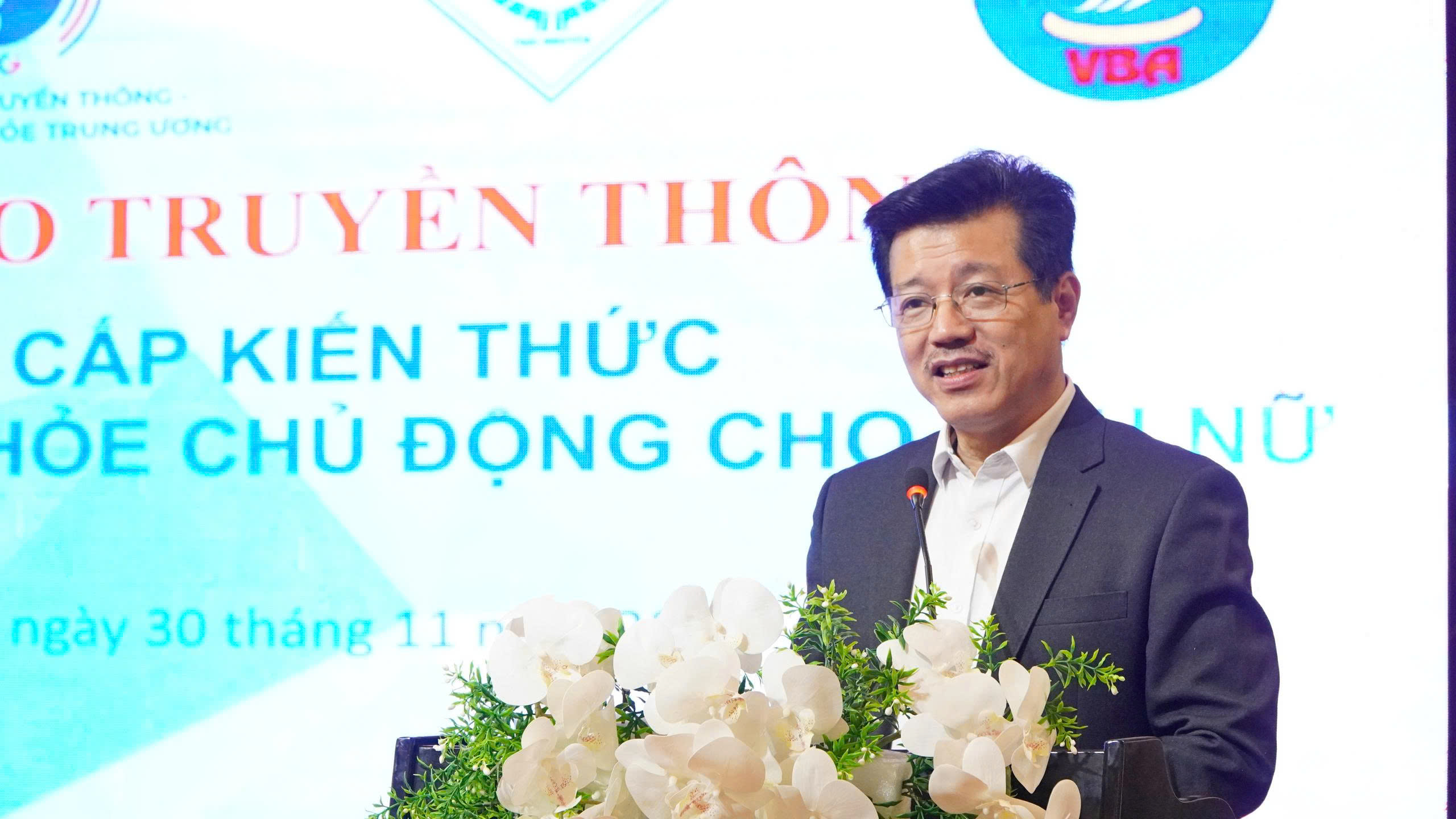 Ông Vũ Mạnh Cường,Giám đốc Trung tâm Truyền thông - Giáo dục sức khỏe Trung ương, Bộ Y tế phát biểu và chia sẻ về nội dung " Phụ nữ và chăm sóc sức khỏe"