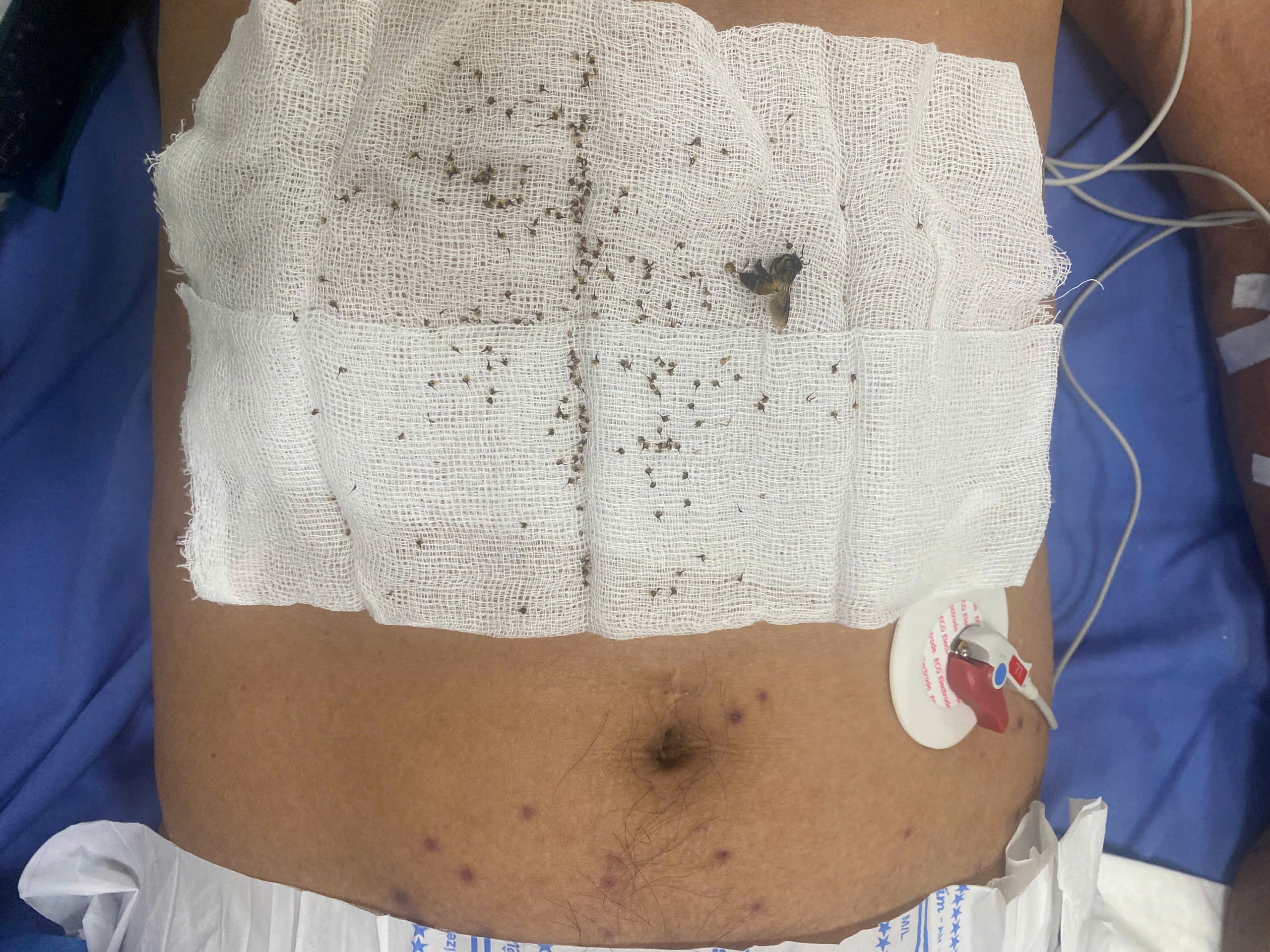 Tại khoa Cấp cứu, sau khi tiếp nhận và thăm khám, ê-kíp cấp cứu đã khẩn trương đảm bảo chức năng hô hấp, tiến hành rút bỏ hơn 300 kim độc, xử trí sốc phản vệ, truyền dịch, dùng thuốc chống viêm, giảm độc tố và bảo vệ chức năng gan, thận cho người bệnh.
