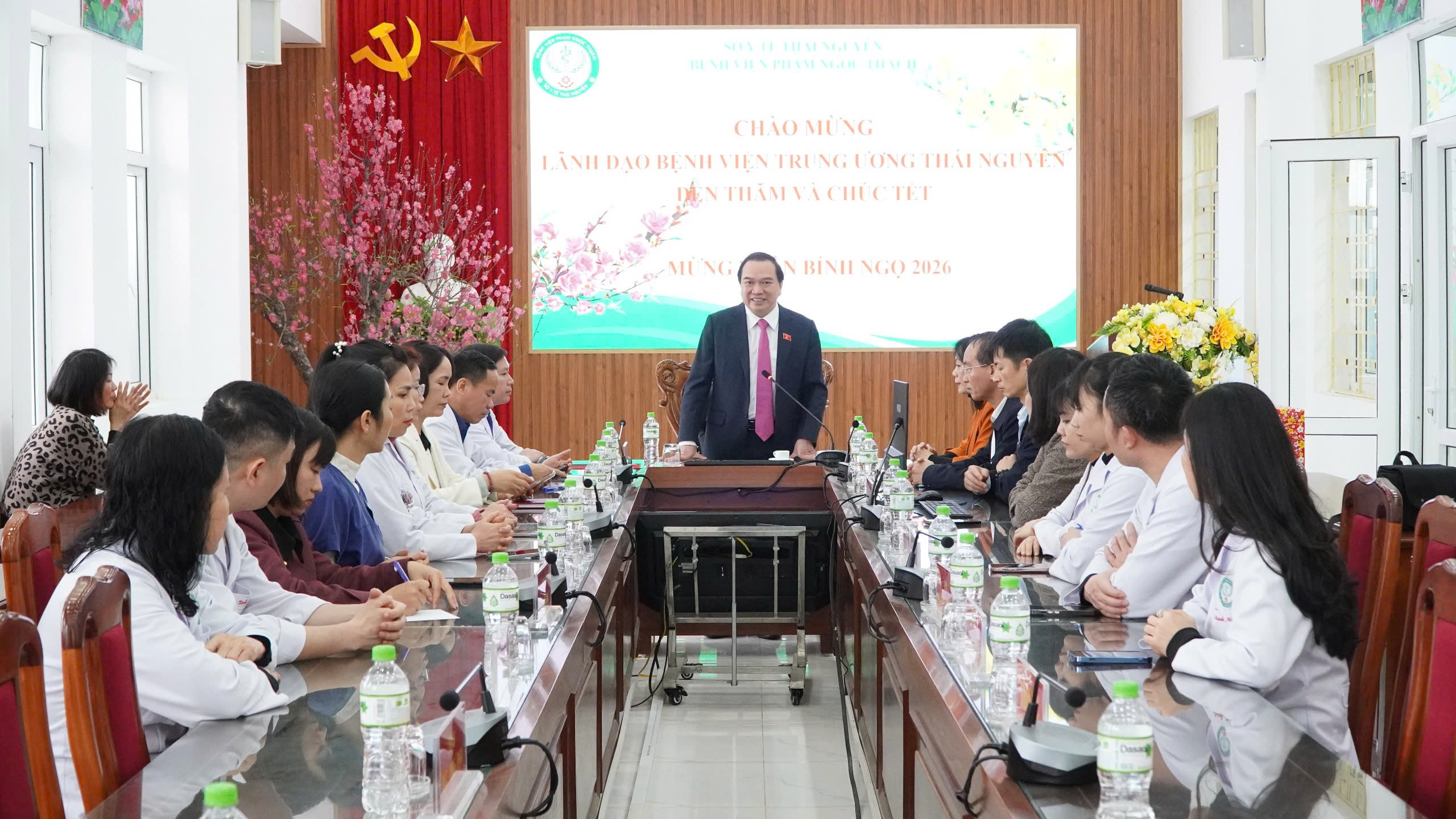 Nhân dịp Tết Nguyên đán Bính Ngọ 2026, PGS.TS Nguyễn Công Hoàng - Đại biểu Quốc hội khóa XV, Bí thư Đảng ủy, Giám đốc Bệnh viện Trung ương Thái Nguyên đã đến thăm, chúc Tết và động viên cán bộ, nhân viên y tế tại một số Bệnh viện, Trung tâm y tế trên địa bàn.