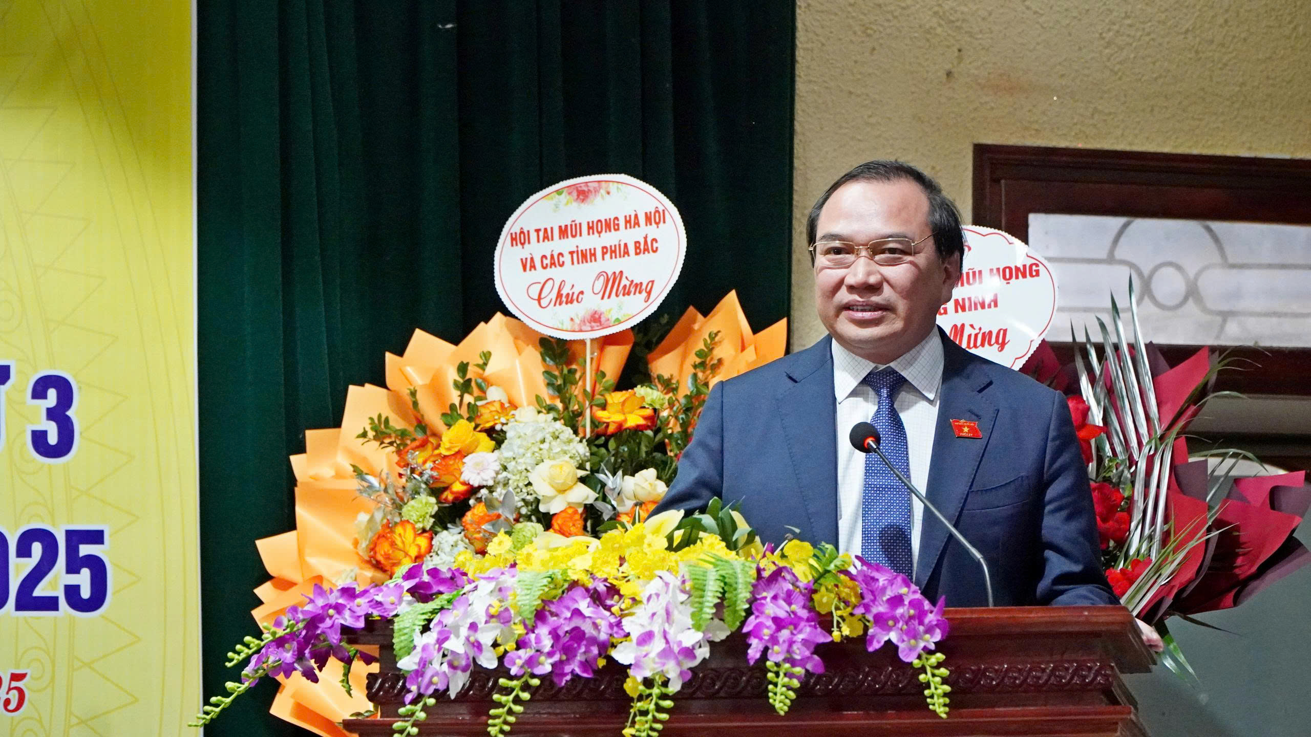 PGS.TS Nguyễn Công Hoàng - Đại biểu Quốc hội khóa XV, Bí thư Đảng ủy, Giám đốc Bệnh viện Trung ương Thái Nguyên, Chủ tịch Hội TMH tỉnh Thái Nguyên khóa II phát biểu khai mạc Đại hội