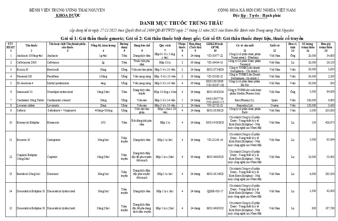 Dowload chi tiết: Danh mục thuốc trúng thầu 2025-2026