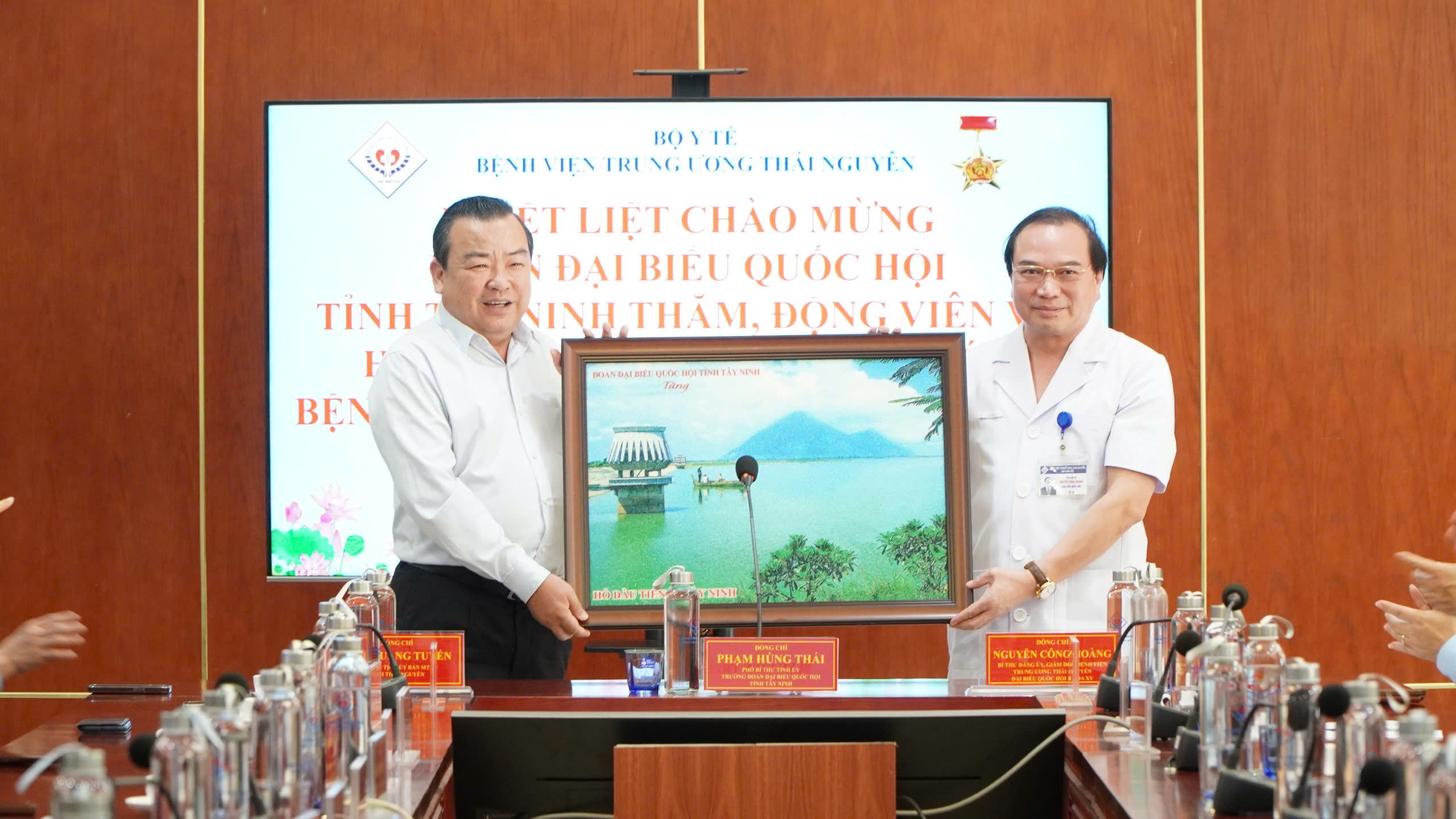 Đoàn Đại biểu Quốc hội tỉnh Tây Ninh trao tặng quà là bức tranh lưu niệm cho Bệnh viện