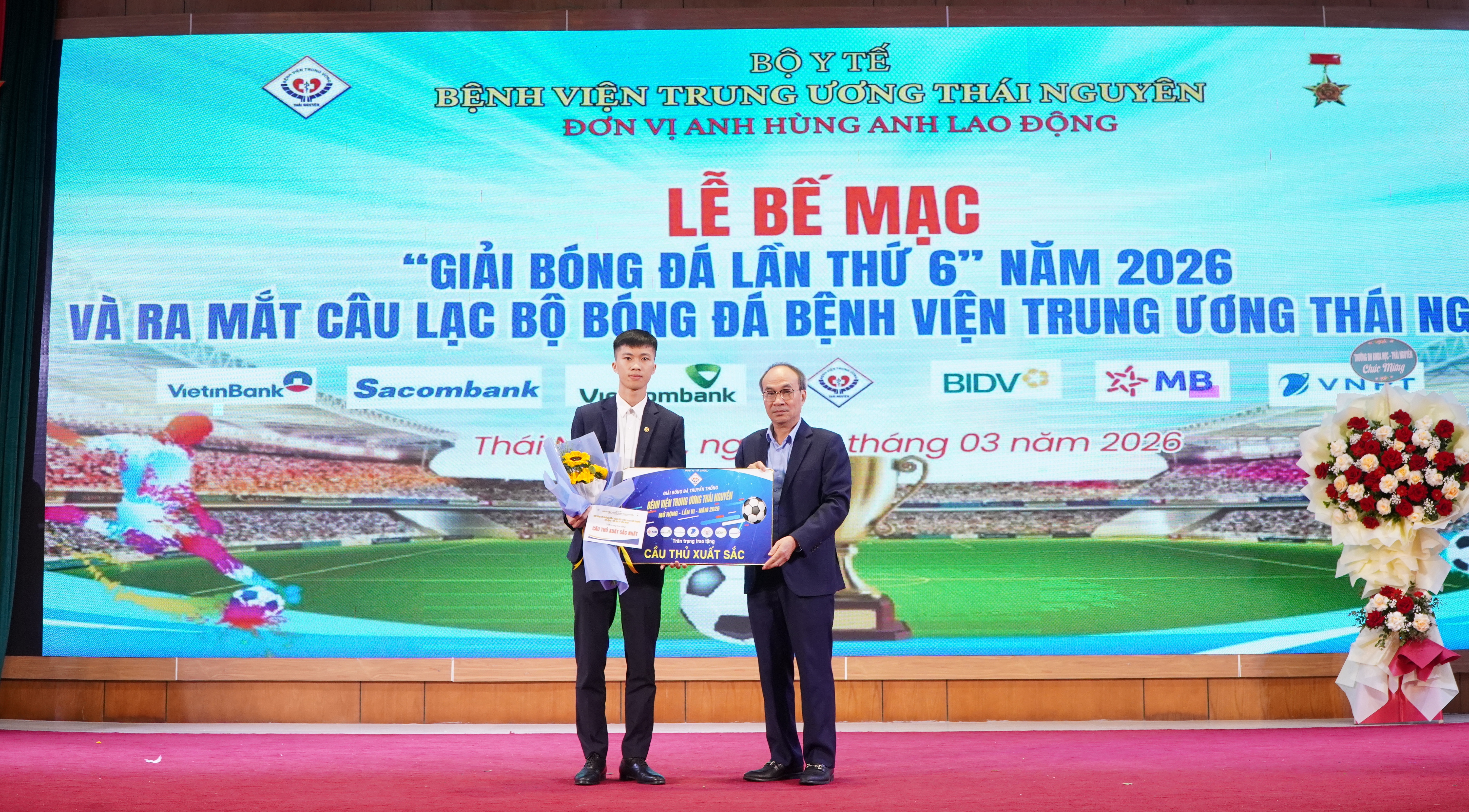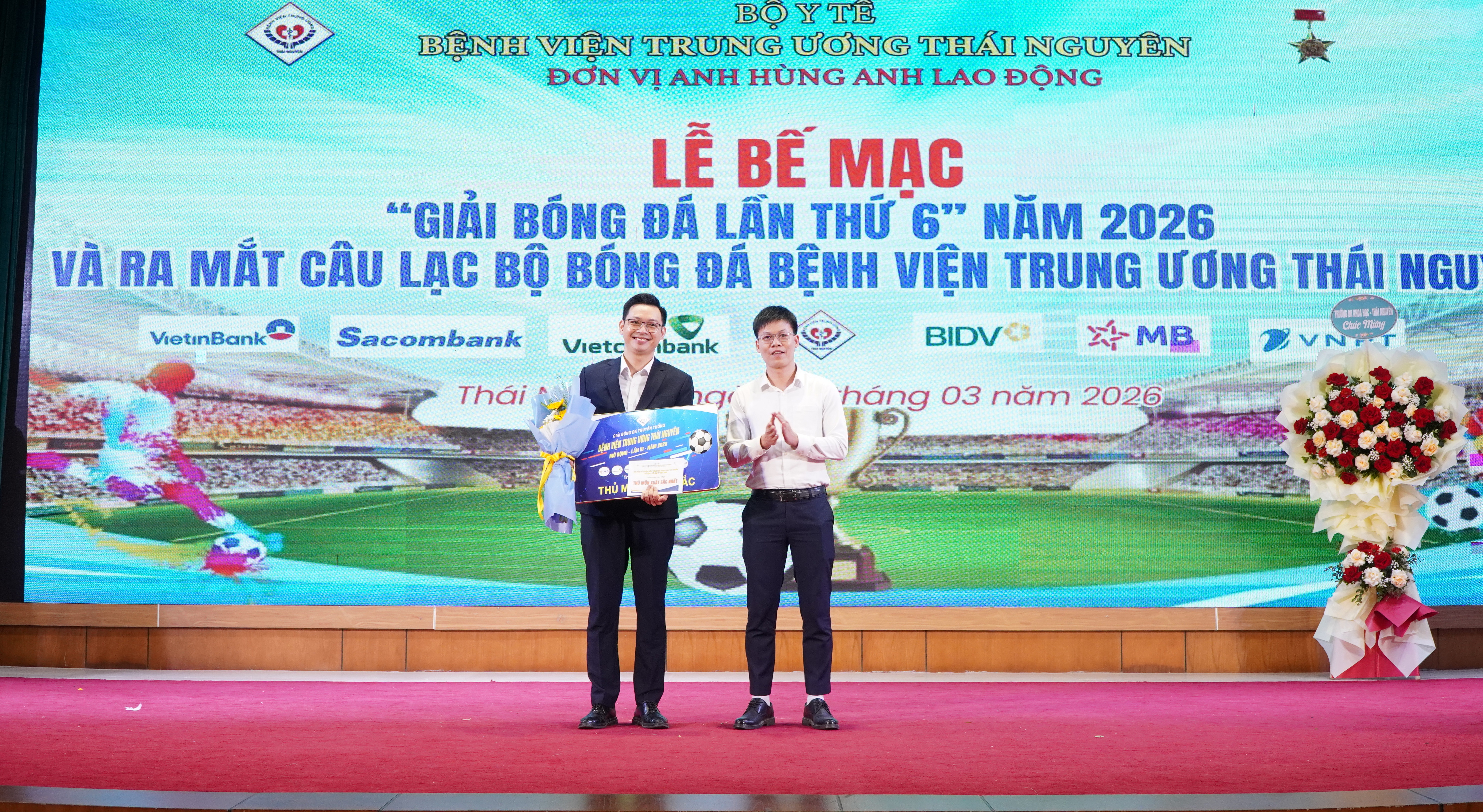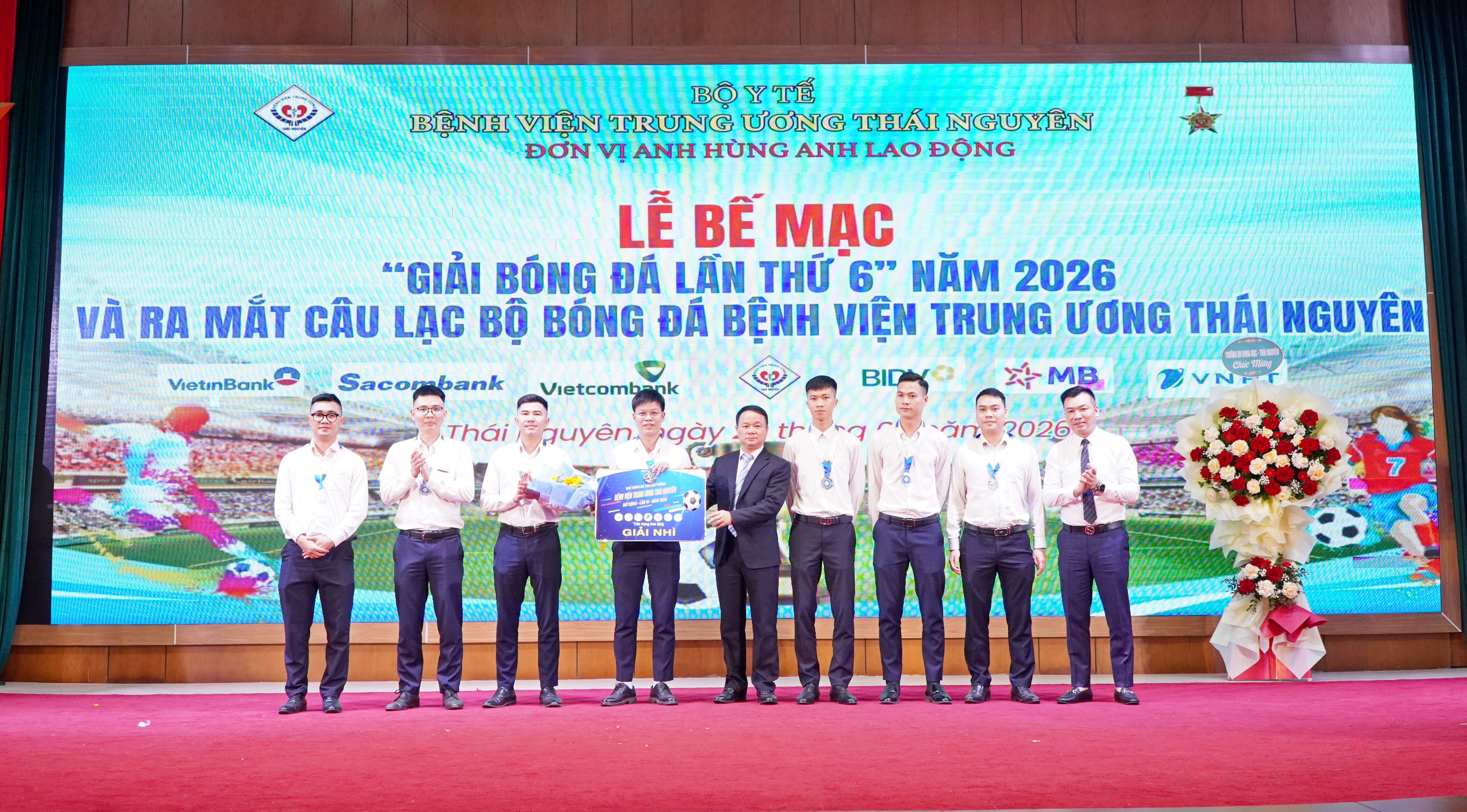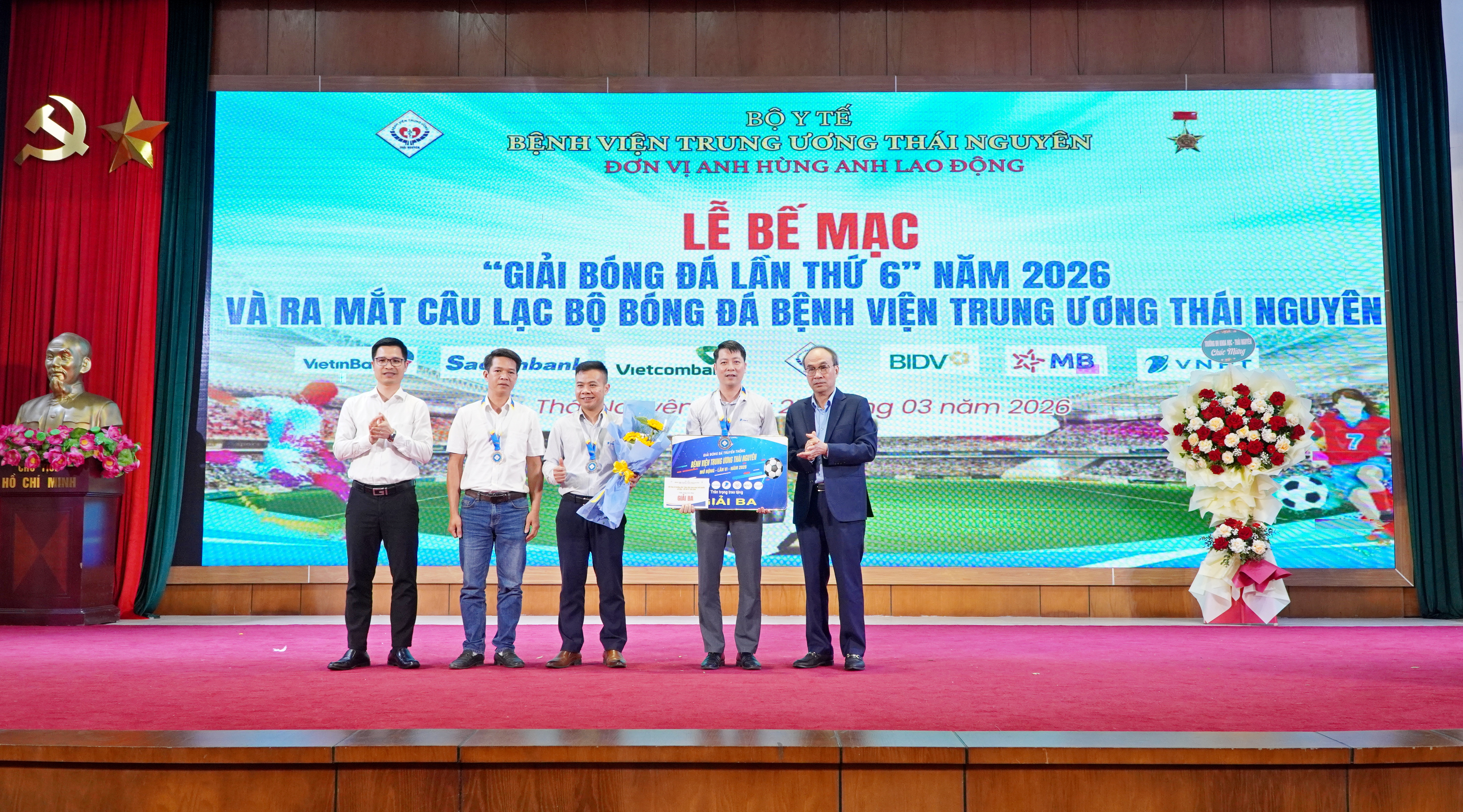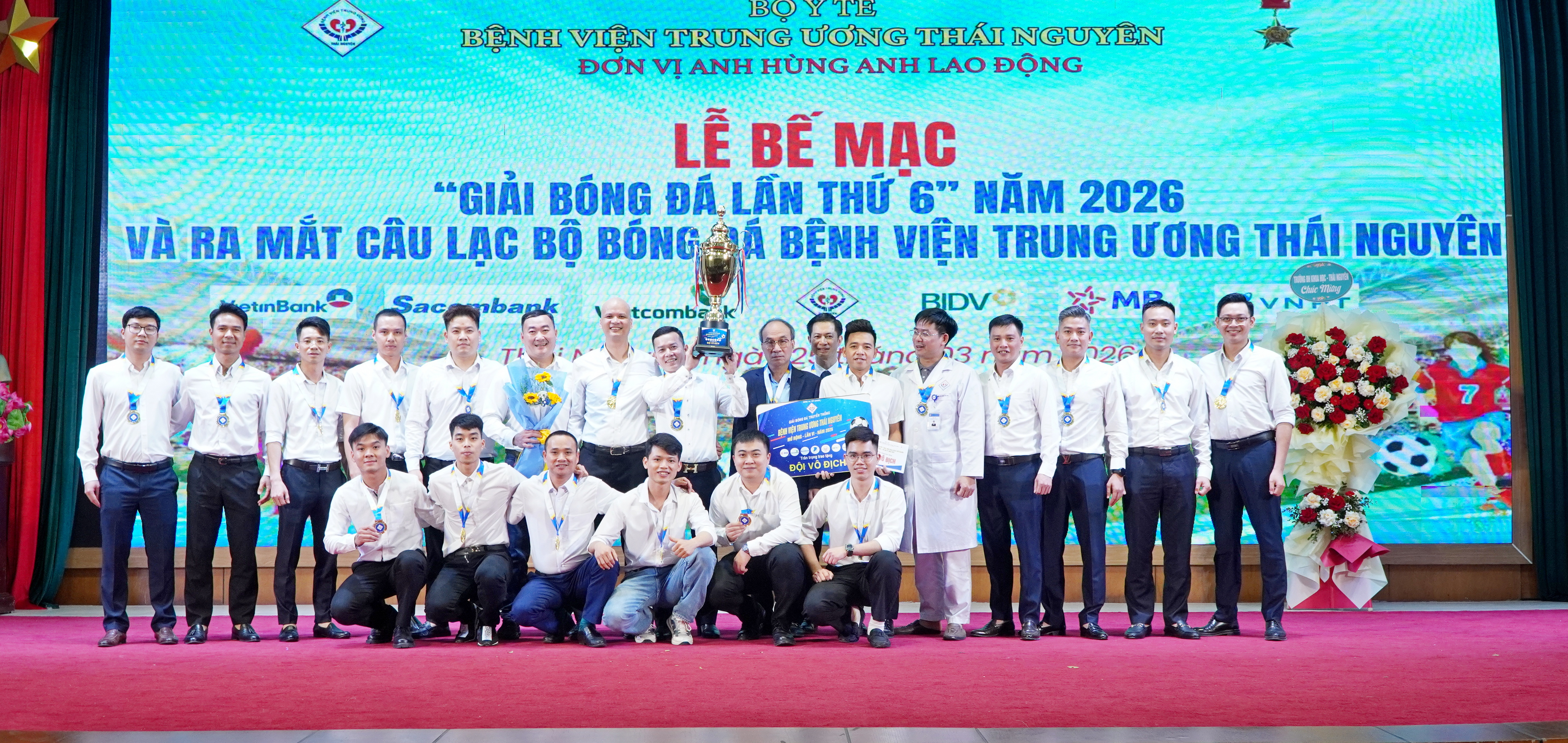 Sau gần 1 tháng tranh tài sôi nổi, giải bóng đá Bệnh viện Trung ương Thái Nguyên mở rộng lần thứ VI năm 2026 đã chính thức khép lại. Đội bóng chủ nhà Bệnh viện tiếp tục bảo vệ thành công chiếc cúp vô địch.