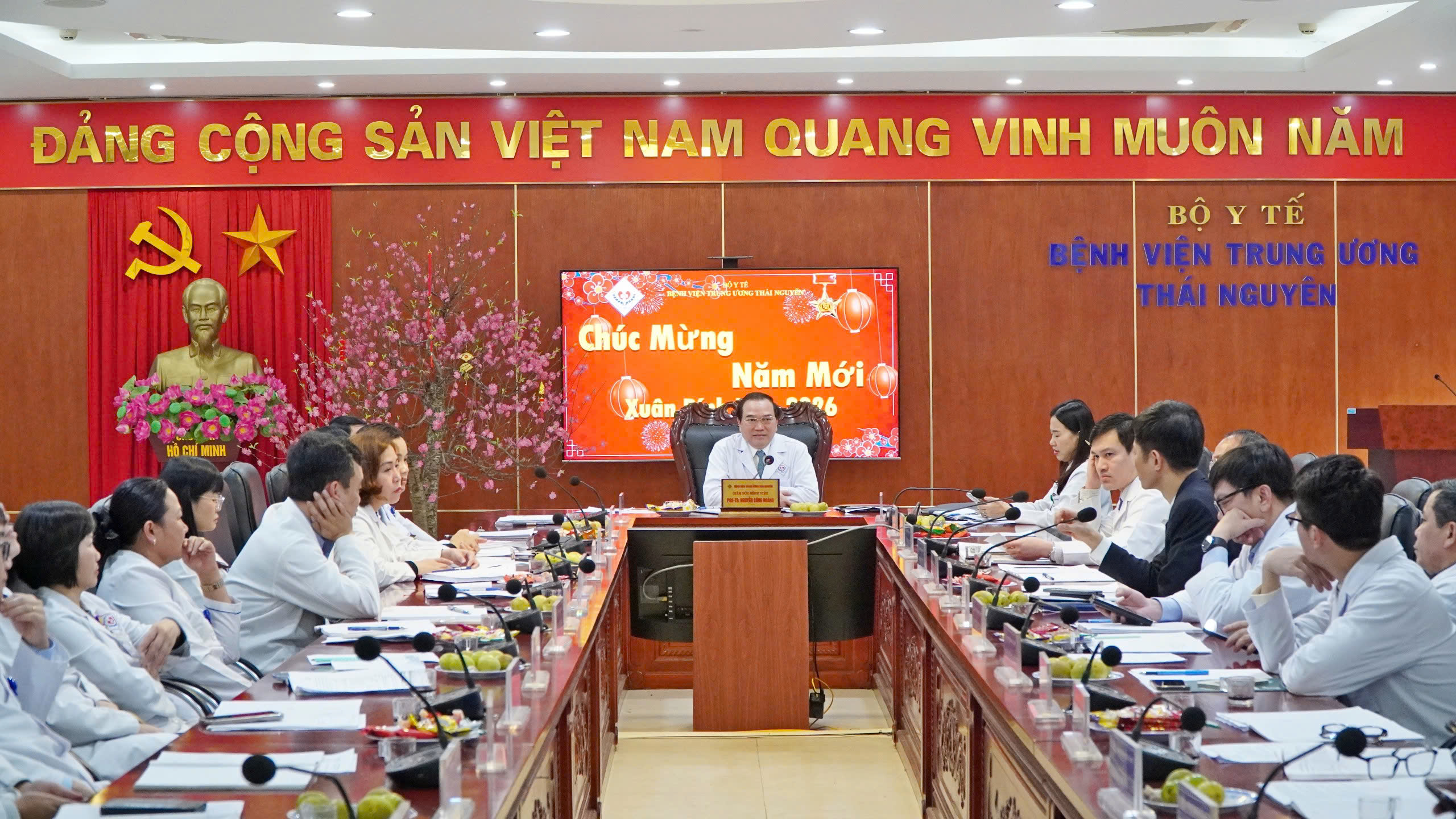 Chiều 13/2 (tức ngày 26 tháng Chạp năm Ất Tỵ), Bệnh viện Trung ương Thái Nguyên tổ chức giao ban cuối năm nhằm đánh giá kết quả thực hiện nhiệm vụ trong năm qua và triển khai các nhiệm vụ trọng tâm phục vụ công tác khám, chữa bệnh dịp Tết Nguyên đán Bính Ngọ.