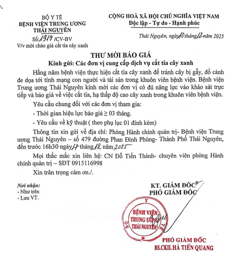 Mời cung cấp dịch vụ cắt tỉa cây xanh khuân viên bệnh viện