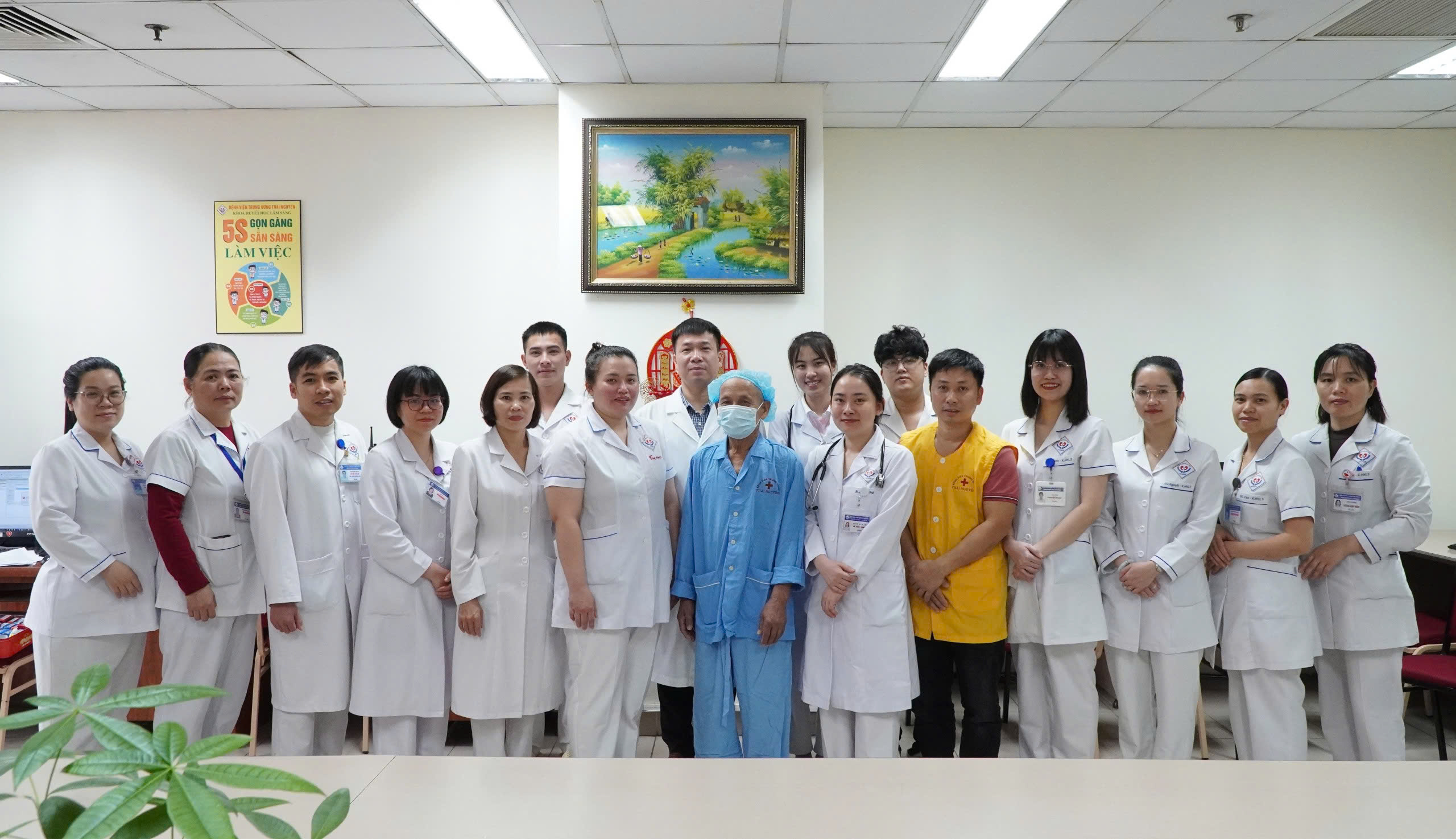 Người bệnh chụp ảnh lưu niệm với tập thể khoa Huyết học lâm sàng