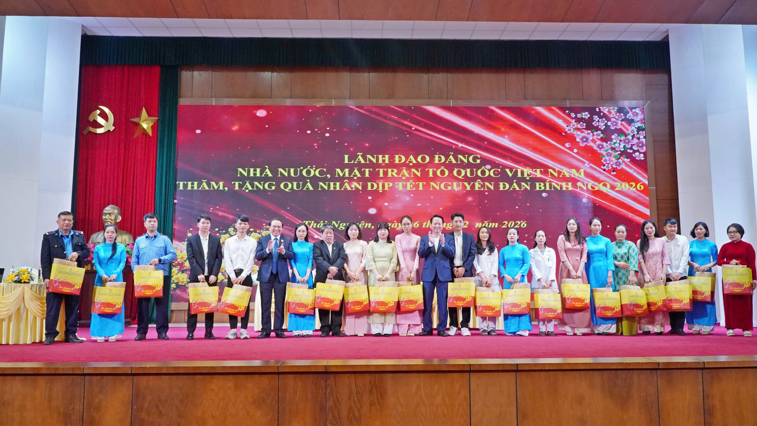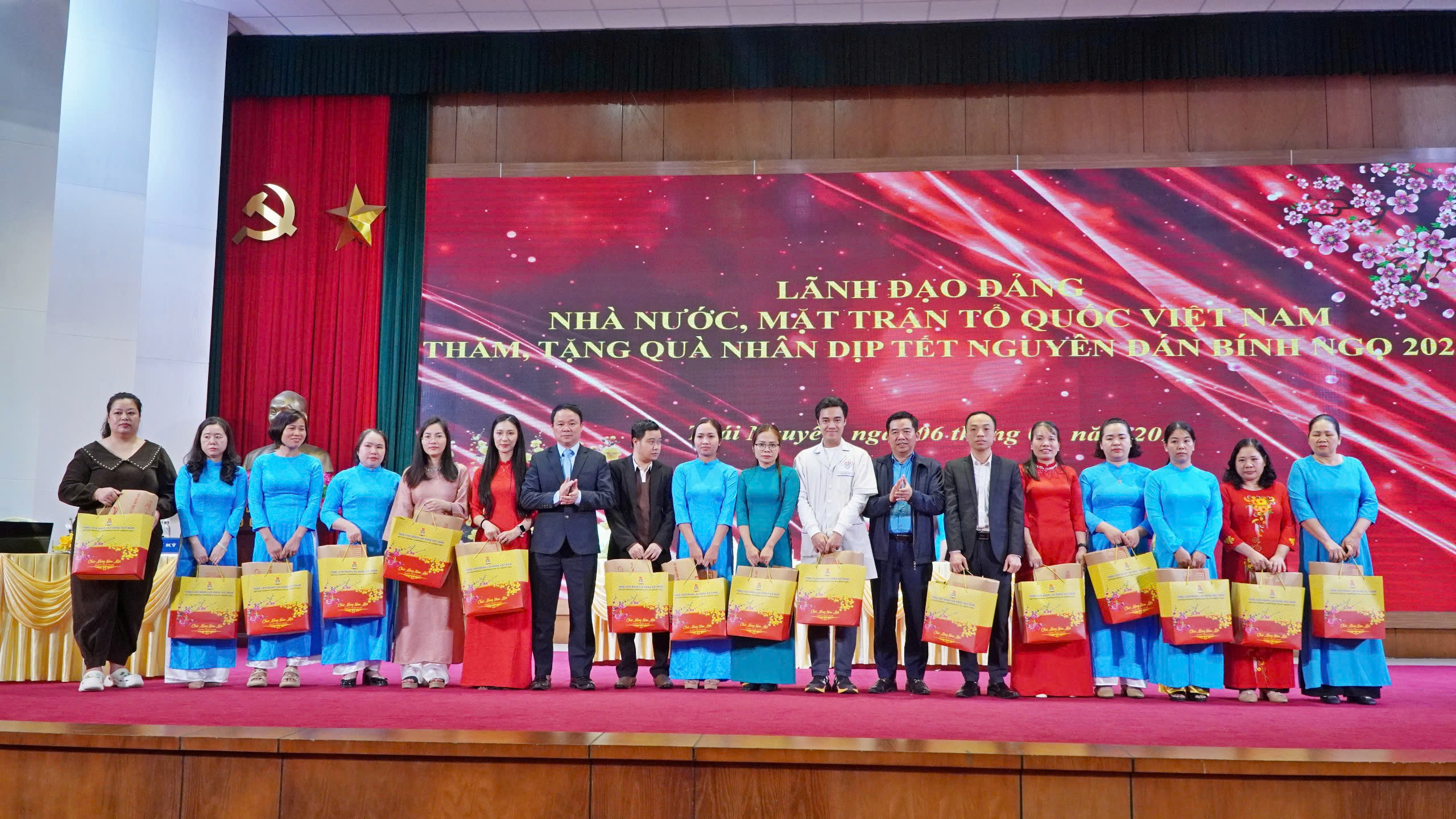 Đại biểu Bệnh viện Trung ương Thái Nguyên có PGS.TS. Nguyễn Công Hoàng - Đại biểu Quốc hội khóa XV, Bí thư Đảng ủy, Giám đốc Bệnh viện; các đồng chí trong Ban Thường vụ, Ban Chấp hành Đảng ủy, Ban Chấp hành Công đoàn; đại diện lãnh đạo các Khoa, Phòng, Trung tâm và 50 đoàn viên, người lao động có hoàn cảnh khó khăn của Bệnh viện.