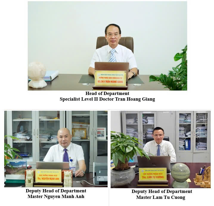 The Administration Department was established in 1951, concurrently with the founding of the Viet Bac Interzone Hospital, the predecessor of today’s Thai Nguyen National Hospital. From its early days, despite facing numerous difficulties in terms of facilities, equipment, and human resources, the Administration Department has been one of the hospital’s key professional units, playing an essential role in ensuring logistical and administrative support for effective operations in medical examination, patient care and treatment, as well as overall hospital management.