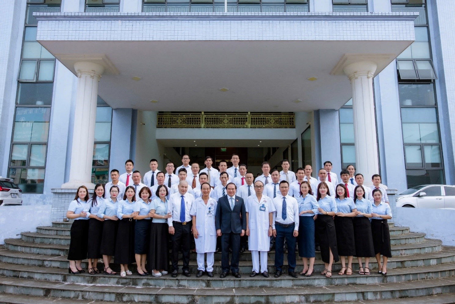 Assoc. Prof. Dr. Nguyen Cong Hoang, Party Secretary, Director of the Hospital and Specialist Level II Doctor Đong Quang Son, Deputy Director of the Hospital, together with the collective of officials and staff of the Administration Department